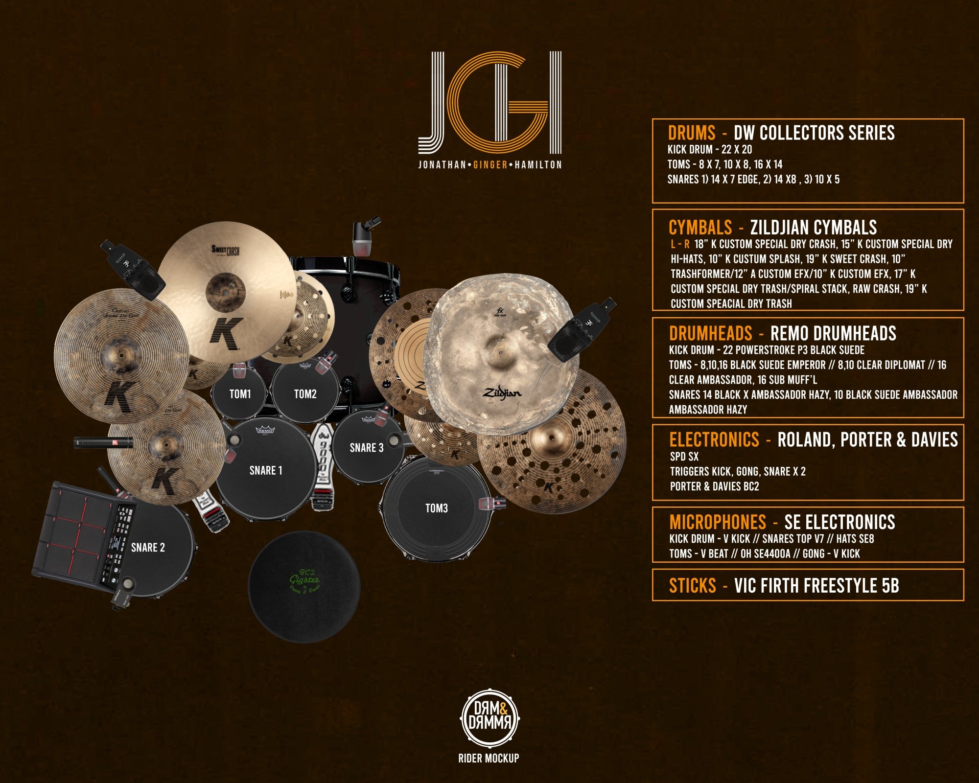 Fully custom rider made to scale, with a gear list It makes Engineers, Tour Managers and tech's job much easier. It also presents your Brand in a professional manner.